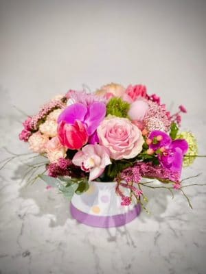 Roses, Orchids, Tulips, Bovardia, Fillers.